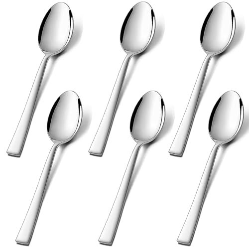 tiokin Teaspoons Set of 6, Stainless Steel Coffee Spoons, Dessert Spoons, Espresso Spoons, Small Spoons with Square Handles for Parties, Home, Restaurants, Dishwasher Safe (14 cm)