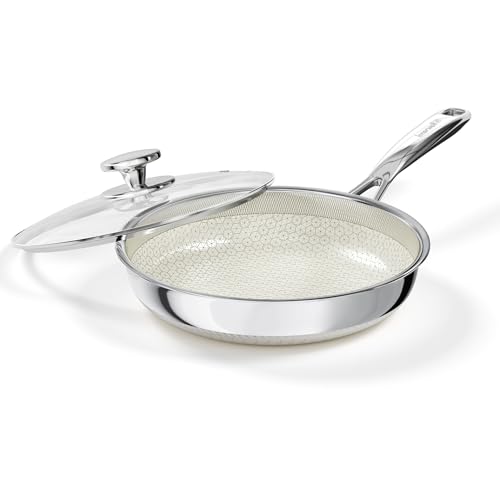 Stainless Steel Non-Stick Frying Pan: 10 Inch Healthy Non-Toxic Ceramic Coating Cookware with Lid,Compatible with Induction,Electric,and Gas Cooktops,PTFE&PFOA Free,Dishwasher&Oven Safe Skillet