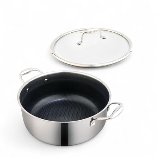 Stock Pot, HaSteeL 10-Qt Stainless Steel Pot, Induction Cooking Pot for Pasta, Heavy-Duty Stock Pot with Lid for Cooking Stewing Braising, Compatible with Most Cooktops, Dishwasher Safe