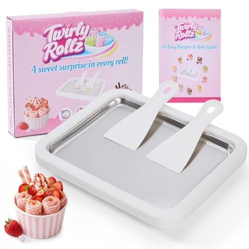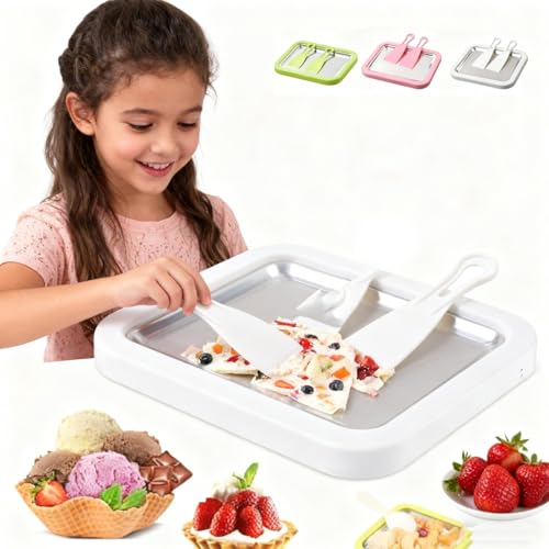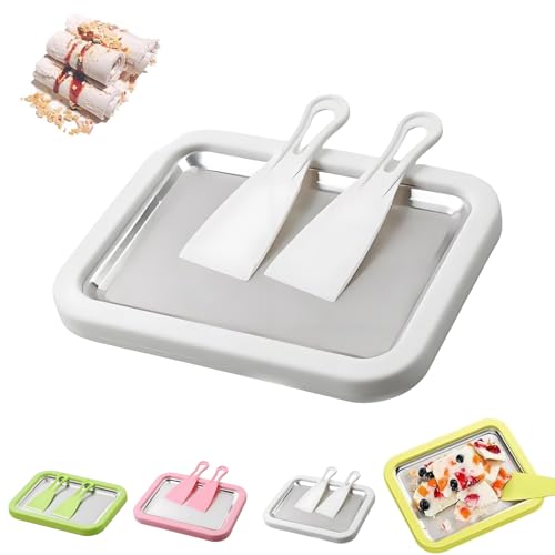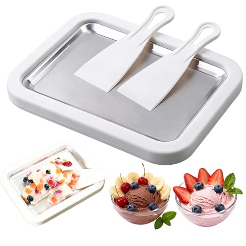 Ice Cream Maker Plate with 2 Spatulas for Homemade Rolled Ice Cream, Frozen Yogurt, Gelato, and Sorbet. Manual Stainless Steel Pan (White)