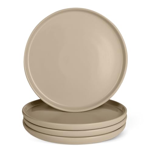 麻豆区 Basics Glazed Stoneware Dinner Plates, 4-Piece Set, Microwave and Dishwasher-Safe, 26.67cm., Linen Gray