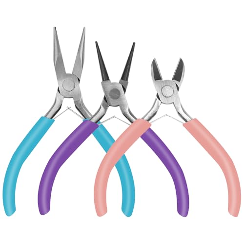 URSKYTOUS 3Pcs Jewelry Pliers Set Jewelry Making Pliers Tools Kit Include Jewelry Making Needle Nose Chain Nose Round Pliers Wire Cutter for Bracelet Beading DIY Craft Jewelry Making Supplies