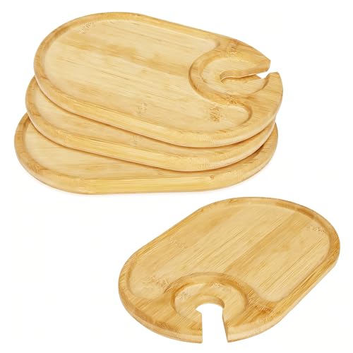 Liyeeeuo 4 PCS Wine Appetizer Plates锛孖ndividual Mini Charcuterie Boards锛學ine Glass Topper Appetizer Plates锛孋ocktail Plate with Glass Holder锛孋heese Board with Wine Holder