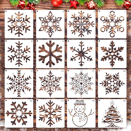 Large Christmas Snowflake Stencil Template, Konsait 6Pack Reusable Plastic Craft Drawing Painting Template, Xmas Stencils for Greeting Cards, Wall, Wood, Face, Cookie, Cake,Biscuit,Coffee Decor