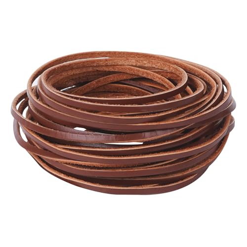 Rairsky Leather Cord Cowhide Leather Cord Leather String, 1 Roll Leather Strips, 50 Yards x 3 mm Leather Cord, DIY Suede Cord, Flat Faux Leather Cord Band for DIY Bracelet Necklace Jewellery Craft
