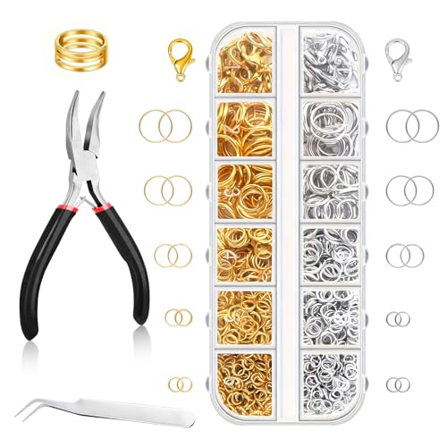 Paxcoo 1200Pcs Open Jump Rings and Lobster Clasps Jewelry Findings Kit with Pliers for Jewelry Making (Silver and Gold)