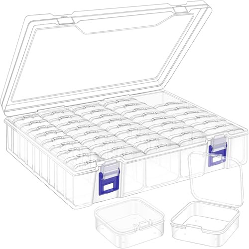 Bead Organizers Box, Funtopia 40 pcs Small Plastic Containers with Lids, Craft Parts Storage Organizer for Jewelry, Mini Sewing Boxes, 5.5cm x 5.5cm x 2cm