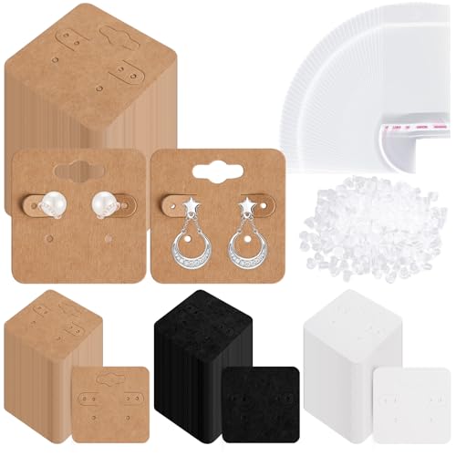TUPARKA 400 Pcs Black Earring Cards Black Earring Holder Cards with Self-Sealing Bags and Clear Earring Backs for Earrings Necklace Display Hanging Jewelry Packaging