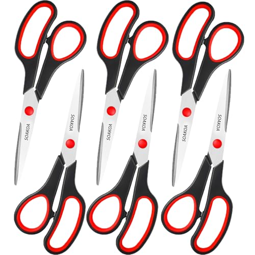 LIVINGO 2 Pack 8" Titanium Non-Stick Scissors, Professional Stainless Steel Comfort Grip, All-Purpose, Straight Office Craft Scissors for DIY(Red/Black)