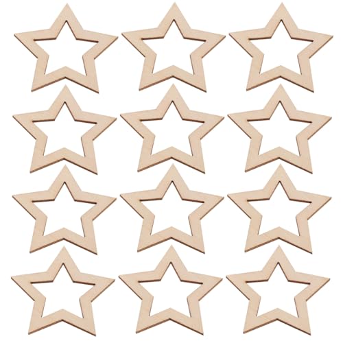 LUTER 500 x Handmade Wooden Star Embellishments Unfinished Cutout Blank Wooden Star Slices Embellishments for Christmas, Wedding, Party, DIY Decoration Cards, 5 Mixed Sizes