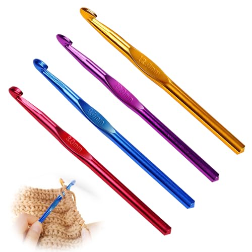 4Pcs Large Crochet Hooks Set (8mm-15mm) - Ergonomic Plastic Hooks for Chunky Yarn with Marking Buckles 100 pcs, Beginner Knitting, Blankets & Shawls