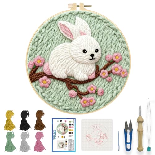 JSRQT Punch Needle Kit for Adults Punch Needle with Cat Pattern Needlepoint Kits for Adults Beginners Kids Handcraft DIY Embroidery Craft Hoop with Instructions