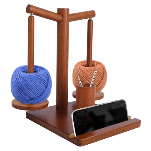 Wooden Yarn Holder for Knitting and Crocheting, Magnetic Crochet Yarn Holder, Spinner Yarn Holder for Crocheting, Crochet Accessories for Yarn Ball (Wood Color)