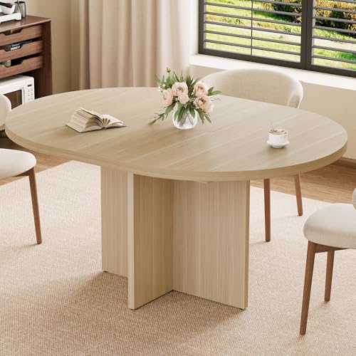 LITTLE TREE 47 Inch Round Dining Table for 4-6, 4ft Grey Dining Table with Pedestal Base,Wood Farmhouse Dinner Tables, Circle Kitchen Tables for Dining, Kitchen, Living Room