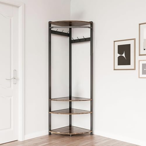 Cerlyunzan Garment Rack, Coat Rack With 3 Shelves and 4 Hooks, 71" H Clothes Stand For Hanging Clothes, Hanging Rod For for Bedroom, Hallway, Entryway, Office, Living Room, Rustic Brown and Black