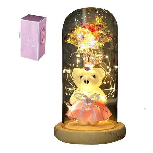 Otlonpe Cute Bear Rose Flower with Light | Women Gifts & Indoor Table Decorations for Christmas, Valentines, Mothers Day, Birthday, Anniversary | Handmade Gifts for Women Mom Wife Girlfriend (Red)