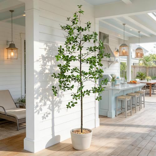 Bellacat Faux Black Olive Tree 7ft, Tall Faux Trees Indoor with Natural Trunk and Realistic Leaves. 7 Feet(84in) Artificial Tree for Home Office D茅cor.