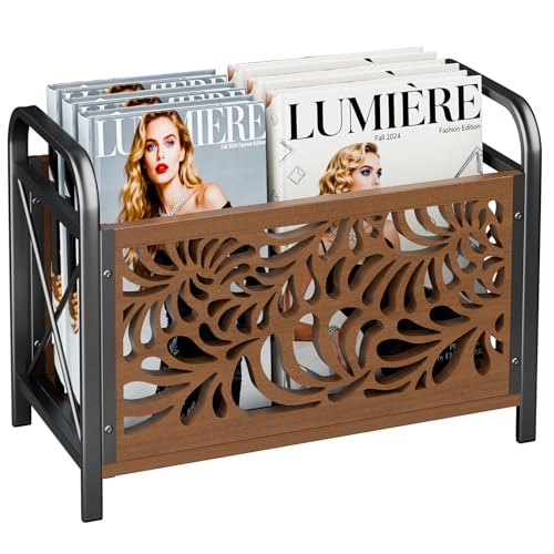 PUERSI Freestanding Magazine Rack 鈥 Modern Touch Handbag Design, Magazine Organizer Metal Holder for Newspaper, Books, Vinyl Record (Gold)