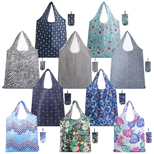 NERUB Set of 10 Reusable Grocery Bags Heavy Duty Shopping Bags Large Grocery Totes