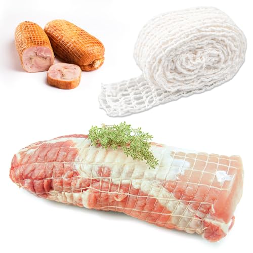 5m Meat Netting Roll, Size 18, Elastic Ham Netting Smoked Meat Poultry Ham Netting Beef Netting Precut Butcher Twine Netting for Meat Cooking Meat Sausage Making