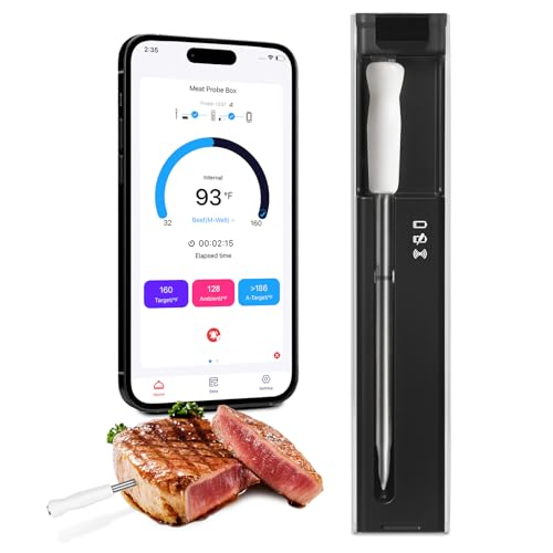Meatmeet Pro WiFi Wireless Meat Thermometer, Smart App Monitoring, Unlimited Range, Ultra-thin Probe, IP67 Waterproof, Bluetooth Digital Meat Thermometer for BBQ, Oven, Grill, Kitchen