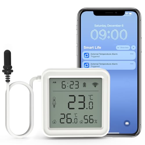 AMIR Wireless Refrigerator Thermometer, Digital Fridge and Freezer Thermometer with Alarm, Freezer Alarm with 2 Sensors, 3.7 inch LCD Fridge Thermometer for Home and Restaurants