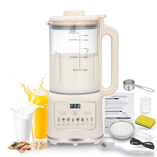 Encyclpo Nut Milk Maker, 50oz Automatic Soy Milk Maker with Spin Clean Brush and Nut Milk Bag, Homemade Plant-Based Oat Milk Machine with Auto Clean, Boil Water, Delay Start, Keep Warm