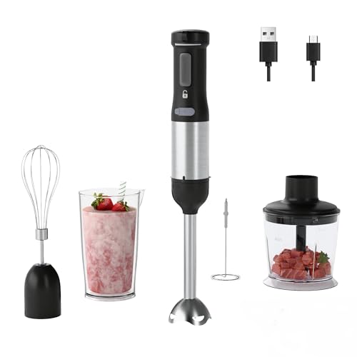 MegaWise Pro Titanium Reinforced 5 in1 Immersion Hand Blender, Powerful with 80% Sharper Blades, 12 Speed Corded Blender, Including 500ml Chopper, 600ml Beaker, Whisk and Milk Frother
