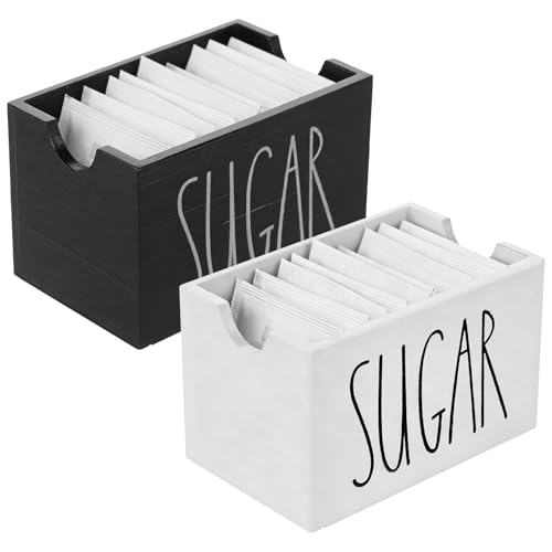 Llazsybz Sugar Sachet Dispenser, Coffee Condiment Container, Versatile Wood, 20 Sachets, for Cafe, Desktop, Office, Black