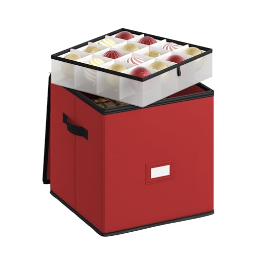 Plastic Christmas Ornament Storage Box with Dual Zippered Closure, Hold 64 Christmas Balls Holiday Ornaments Xmas Holiday Ornament Storage Cube Organizer Christmas Chest with Dividers (1)