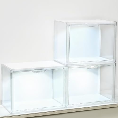 HAIXIN Stackable Storage Bins with 3 Lids - Plastic Organizer Boxes, 8.4 Gal Collapsible Closet Organization, Foldable Trunk Boxes, Dorm Room Essentials, 3 Pack