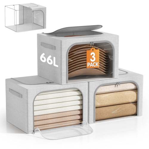 Lifewit Clothes Storage Bins with Metal Frame, Stackable Storage Box, Foldable Clothing Storage Bins with Lids, 40L Storage Bags Fabric Box Organizer with Clear Window锛 Zippers锛 Durable Handles 6 Pack