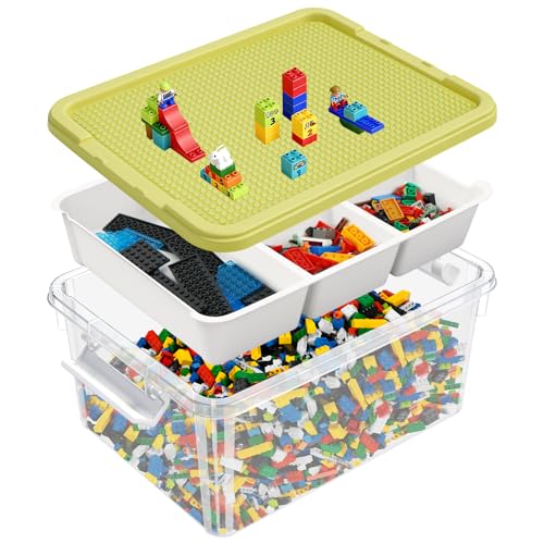 Storage Organizer for Lego, 3 Tier Stackable Storage Bin Transparent Building Bricks Puzzle Craft Plastic Container Organizing Sorter, Yellow