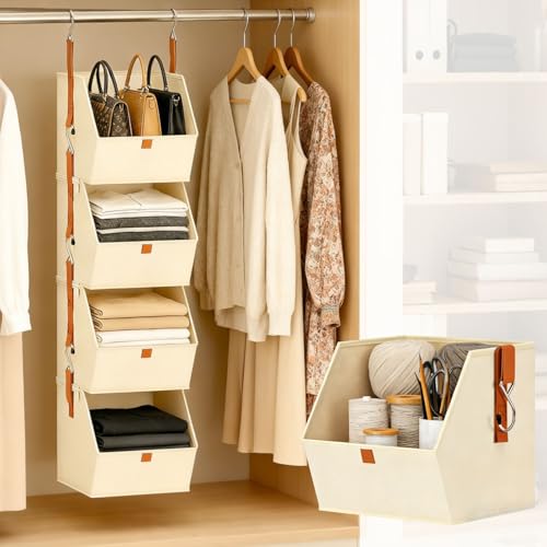 HOLDN鈥 STORAGE - 4 Shelf Hanging Closet Organizer - Closet Hanging Shelves Storage and RV Closet Hanging Organizer- Grey with Black Metal Rod - 24鈥 W x 12鈥 D x 29-1/2鈥 H - Perfect for College Dorms