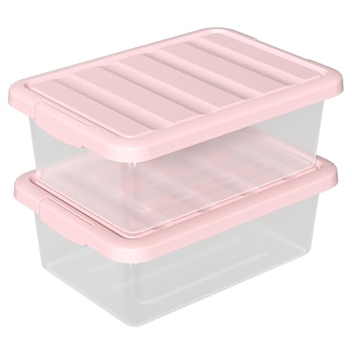 HOMELUX THEORY 2pc Low Profile Under Bed Storage Containers, Thin Under Couch Storage Organizer with Bins & Lids, Underbed Storage Box Ideal for Seasonal Clothes, Blankets, Fabric & Shoes (LightGray)