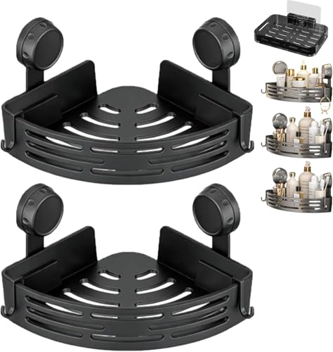 LOOBOV Shower Caddy Corner, Rustproof Shower Shelves, Bathroom Caddy No Drilling, Bathroom Organizers/Storage with Hooks (2 Pack- Black)