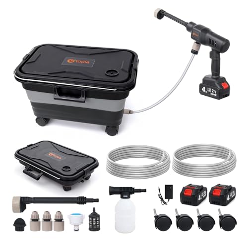 880PSI Portable Cordless Pressure Washer with Foldable 6.5Gal Tank, 2 * 4.0Ah Batteries for 60 Mins Use, 6-in-1 Nozzle, 2 * 5M Hoses, with Wheels for Car Washing, Patio, Bike, Fence, Boat, Pet, Deck