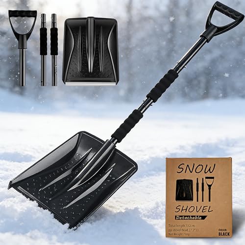 KINFAVOU 32" Aluminum Snow Shovel, Adjustable Heavy Duty Metal Shovel with Storage Box for Car, Driveway, Garden, and Camping, Durable Emergency Snow Shovel for Winter Snow Removal