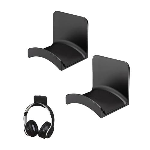 Lovgrin 2PCS Under Desk Headphone Holder, Aluminum Alloy Stand Hanger Holder Universal Fit Gaming Headset Rack Desk Headphone Hanger for Storage(Black)