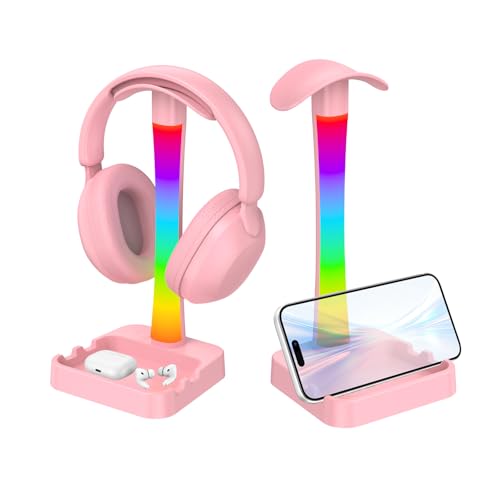 VCOM Headphone Stand with 17 Light Modes, Gaming Controller Holder with Remote Control, PC Gaming Accessories for Desk, Universal Organizer Headpsets/Xbox/PS5 Headset Stand Gamer Gifts