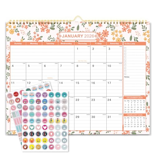 18 Months Calendar 2026-2027 Academic Wall Calendars Family Calendrier Planner 17"x 11.5" from Jan. 2026 to June. 2027 Including 6 Sheet Stickers, 2 Tools Bags for Home School Office Organizing