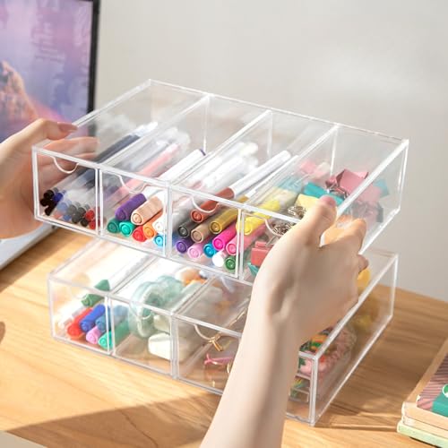 Clear Drawer Organizer Set,7PCS Acrylic Drawer Storage Trays,Stackable makeup divider tray,Plastic Containers,Storage Bins for Makeup,Jewelry, Gadgets,Office,Kitchen, Bedroom,Bathroom
