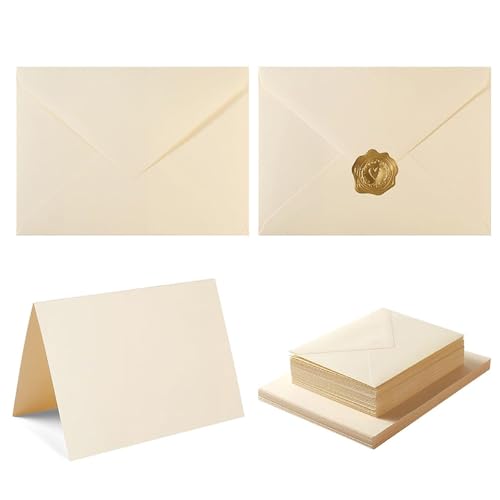 50 Pcs A6 Envelopes with Plain Cards Beige Envelopes with Folding Blank Cards and Gold Stickers Stationary Set for Wedding Invitations Birthday Holiday Graduation Baby Shower Party Greeting Card