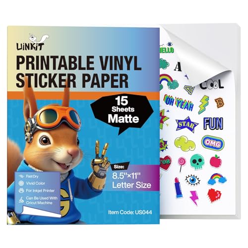 Limia's Care Printable Vinyl Sticker Paper for Inkjet Printer - Glossy White - 15 Self-Adhesive Sheets - Waterproof Decal Paper - Standard Letter Size 8.5"x11"