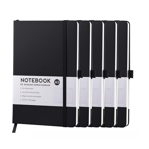 RETTACY Bullet Dotted Journal Notebook, 192 Pages, A5 Medium Size (14.5 脳 21 cm), Leather Hardcover, 100 GSM Thick Paper, for Bullet Journaling, Planning, Tracking (Black)
