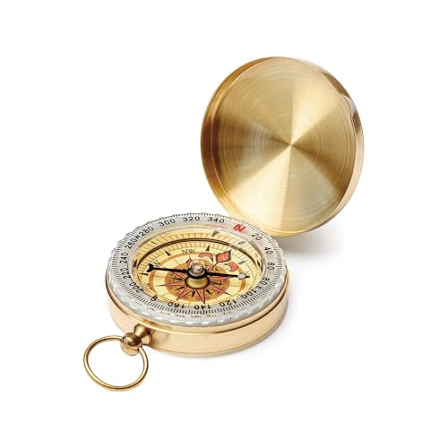 VILLCASE Vintage Pocket Compass, Brass Bronze Compass, Classic Portable Push Open Compass On Chain for Hiking, Camping, Motoring, Boating, Backpacking