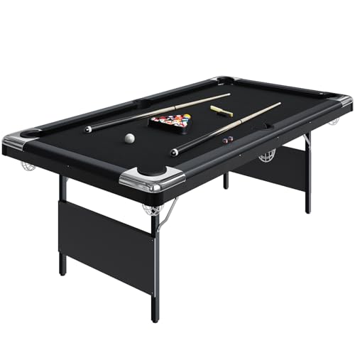 GoSports Mid-Size 6 ft x 3.5 ft Billiards Game Table - Foldable Design, Includes Full Set of Pool Balls, 2 Cue Sticks, Chalk, and Felt Brush - Red