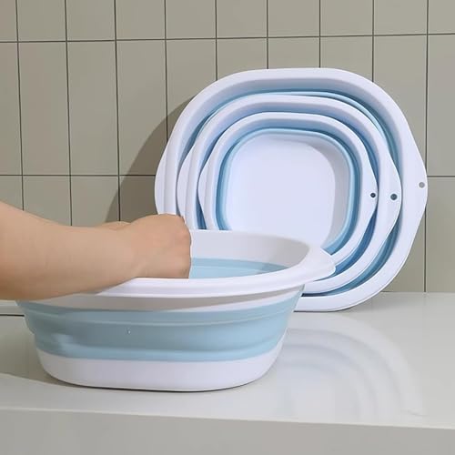 Folding Washbasin, 2Pcs Multi-Functional Round Washing Up Bowl, Silicone Collapsible Washbasin, Outdoor Portable Washing Basket, for Travel, Camping, Hiking, Sports and Pets (Blue, Pink)