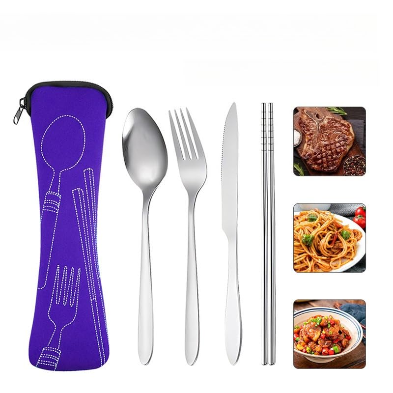 WVD 4 Sets Utensil Set with Protective Bag, Reusable Plastic Travel Cutlery Set, Portable Forks Spoons Knife Flatware Set, Camping Utensils for School Lunch Box, Picnic, Daily Use