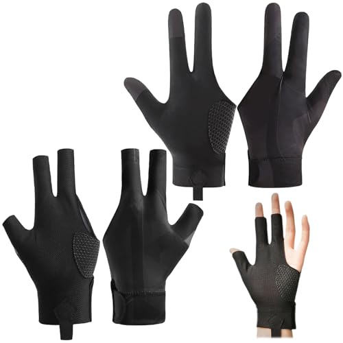4Pcs Billiards Glove, 3 Fingers Pool Gloves, Breathable Pool Cue Glove Right & Left Hand Show Gloves Elastic Universal Cue Sport Gloves Pool Billiard Accessories for Shooter Snooker Cue